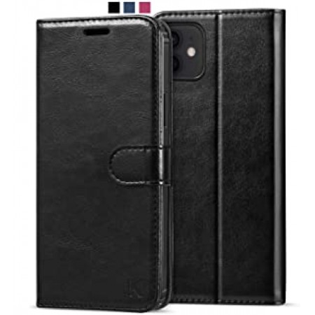 KILINO iPhone 12, iPhone 12 Pro Wallet Case [RFID Blocking] [PU Leather] [Soft TPU] [Shock-Absorbent Bumper] [Card Slots] [Kickstand] [Magnetic Closure] Flip Folio Cover (Black)